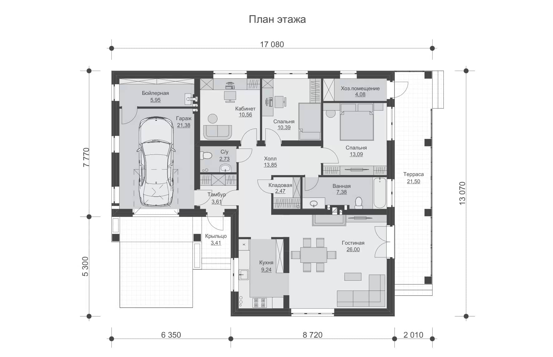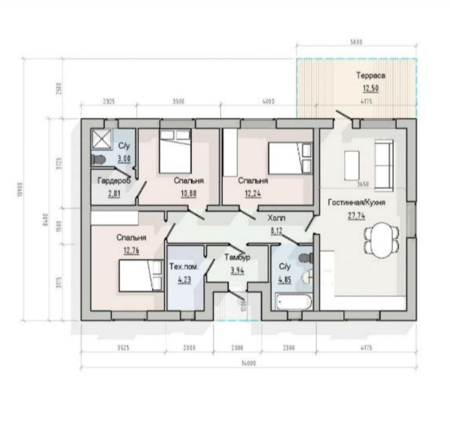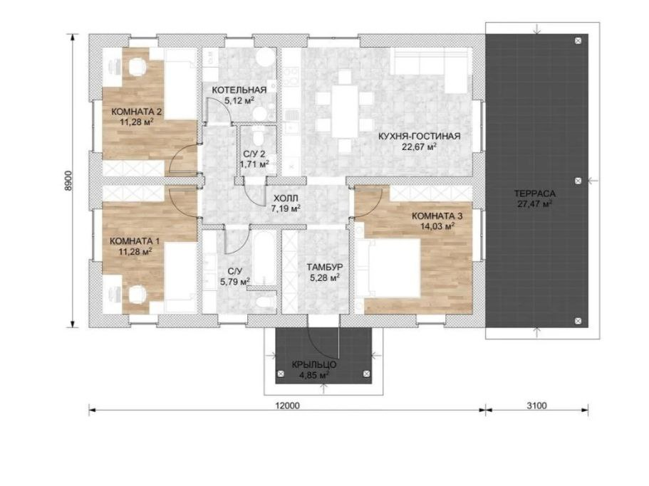 Фундамент: Монолитная ж/б плита 300 мм, «подушка» под основание плиты с послойным