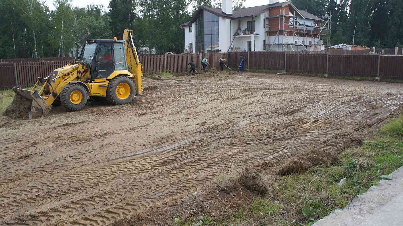 уплотнением виброплитой, прокладка канализации, закладные для ввода электричества ,воды