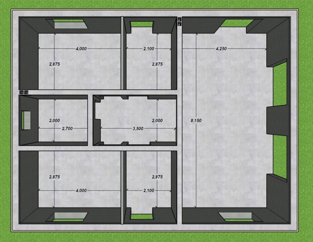 мм, перегородки 100 мм. армирование металлической арматурой 8мм, утепленный армопояс.